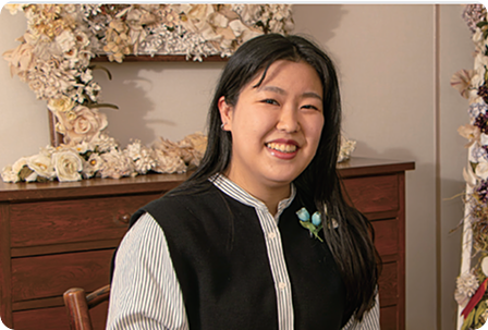 高校で服飾を学んでいたのですが、それ以外のデザイン分野にも興味を持ち、様々な分野を学べる生活デザイン学科を選びました。卒業後も何かを作り出したいという気持ちが消えず、物を作る仕事を目指しました。今はコサージュなどのアクセサリーを作る仕事として染色をメインに生産全般に携わっています。大学では“発見、熟考、企画”することでカタチにしてきました。長い時間をかけて、失敗したり別の視点から見直したりしながらひとつの作品を完成させた時の喜びは、何物にも変え難いです。