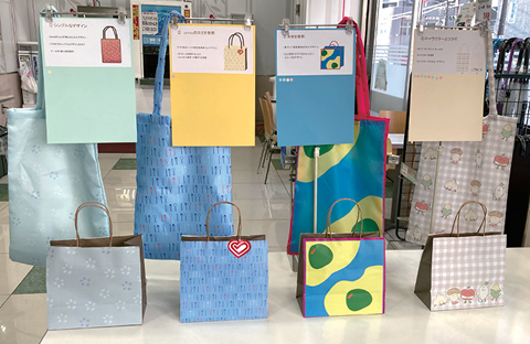 地元スーパーマーケット三和と連携し、「エコバッグのデザイン」「食を学ぶためのポップデザイン」「オリジナル惣菜のレシピ考案」の3つの企画に取り組みました。学生が考案したデザインは、期間限定で実店舗にて展示・発表されました。