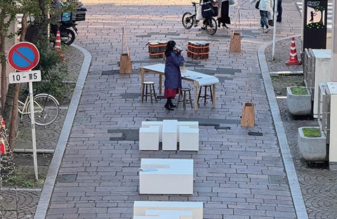 相模原市からの依頼により、相模女子大学北口に延びる「コリドー街(相模大野北口商店会)」のにぎわい創出をテーマにストリートファニチャーを展示しました。