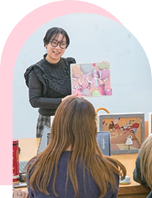 80名の定員に対して8名の専任教員を配する徹底した少人数教育により、一人ひとりの個性を伸ばし、独創的なデザインを生む力を育みます。
